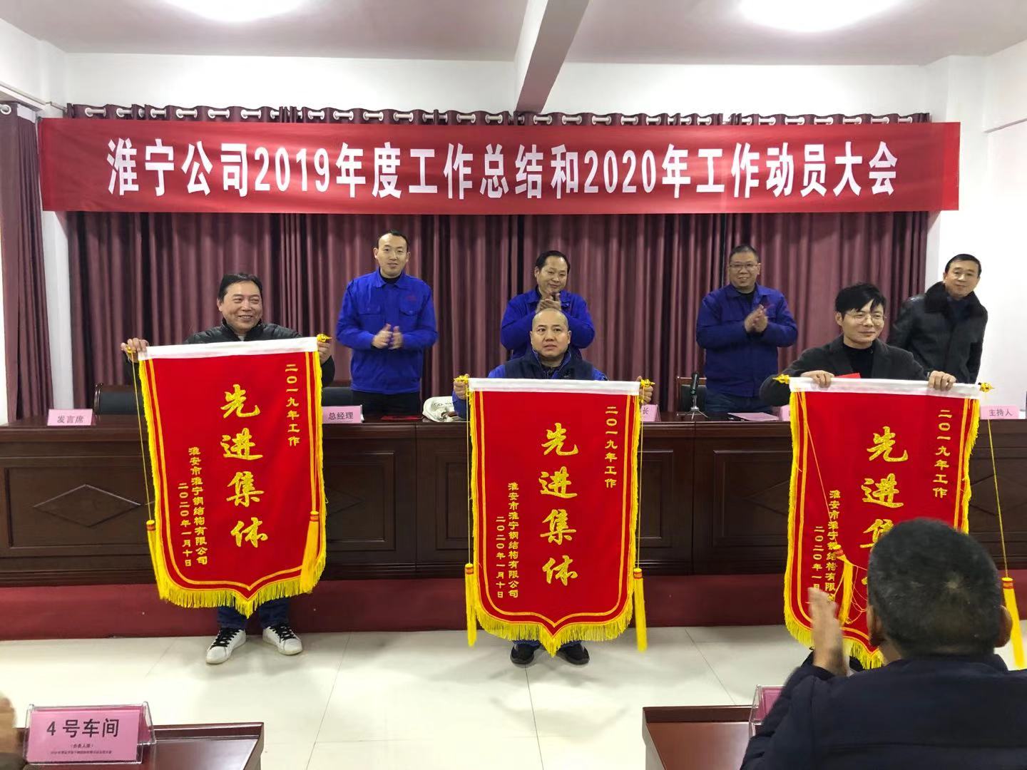 2020年1月10日,淮安市淮寧鋼結(jié)構(gòu)有限公司在本公司辦公樓一樓會(huì)議室召開了2019年度工作總結(jié)和2020年工作動(dòng)員大會(huì),從車間到管理層共有150余人參加了會(huì)議。會(huì)上首先有總經(jīng)理秦電文致新年賀詞,接著由董事長陳國寶先生代表公司作《2019年度工作總結(jié)和2020年工作動(dòng)員報(bào)告》,他實(shí)事求是地總結(jié)了過去一年的工作,對(duì)存在的問題進(jìn)行深入淺出地分析,并提出了新的一年的發(fā)展思路和年產(chǎn)鋼結(jié)構(gòu)3萬噸、實(shí)現(xiàn)銷售收入1億元、利稅2000萬元的奮斗目標(biāo)及5個(gè)方面的重點(diǎn)工作措施。會(huì)上還采取無記名投票方式差額選舉產(chǎn)生3個(gè)先進(jìn)集體和24名優(yōu)秀員工,并對(duì)獲得“先進(jìn)集體”和“優(yōu)秀員工”稱號(hào)的車間、部門、員工進(jìn)行了表彰和獎(jiǎng)勵(lì),先進(jìn)集體,優(yōu)秀員工代表作表態(tài)發(fā)言,整個(gè)會(huì)議歷時(shí)兩小時(shí)三十分鐘,會(huì)議全過程始終洋溢著振奮、熱烈、愉快的氣氛。會(huì)議結(jié)束后,全體參會(huì)員工參加了公司舉辦的晚宴。